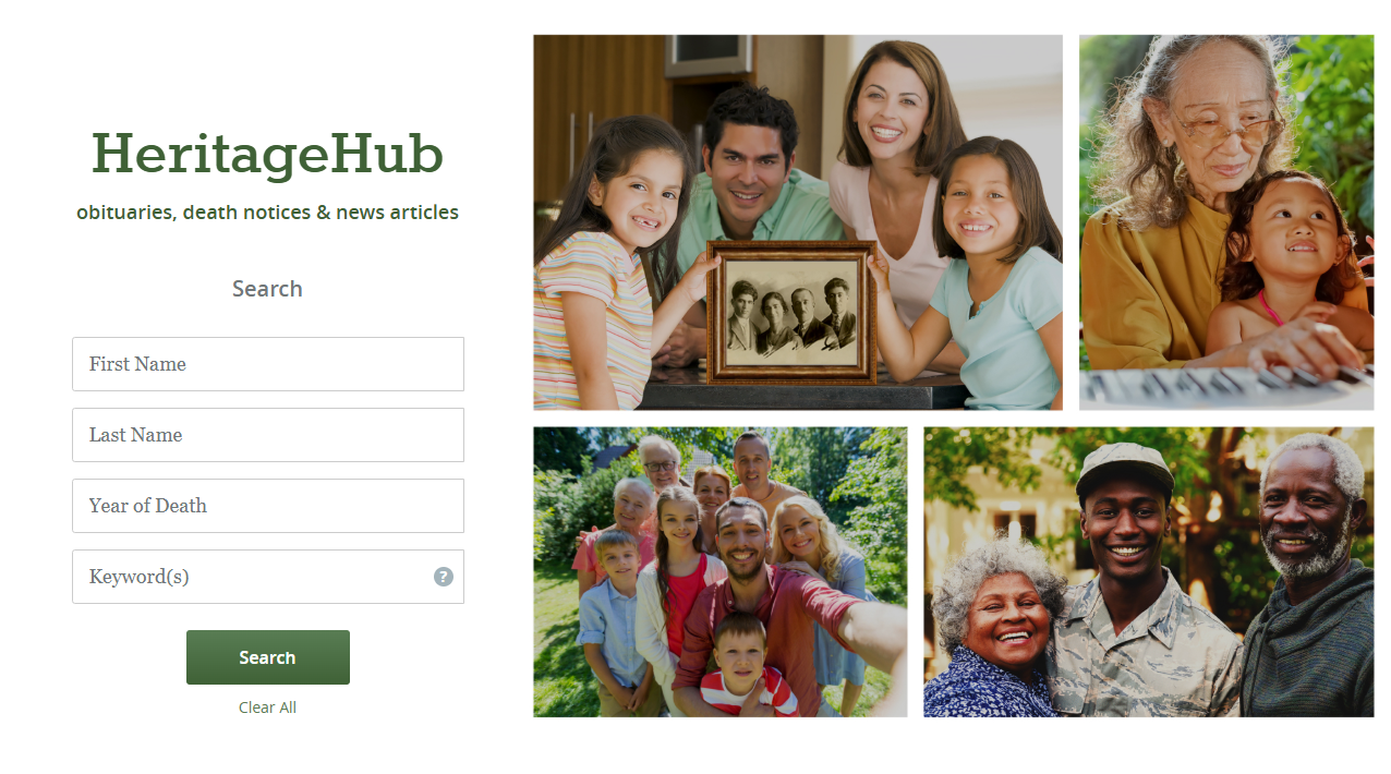 Explore your family history with the premier collection of U.S. obituaries and death notices for in-depth genealogical research from 1704 – today. HeritageHub helps you easily identify relatives, uncover new information and potentially unknown family members. Includes deep coverage from all 50 states, hard-to-find content from the mid 1900’s, and original obituary images. Access is available 24/7.