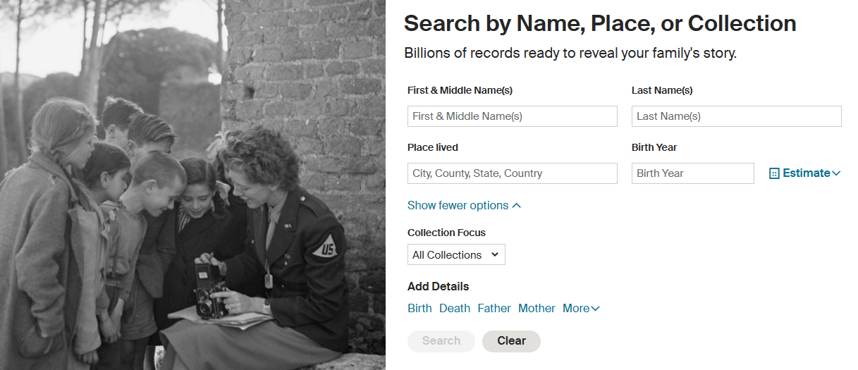 Genealogical collection of the U.S. and the U.K., including census, vital, church, court, and immigration records, as well as record collections from Canada and other areas.
